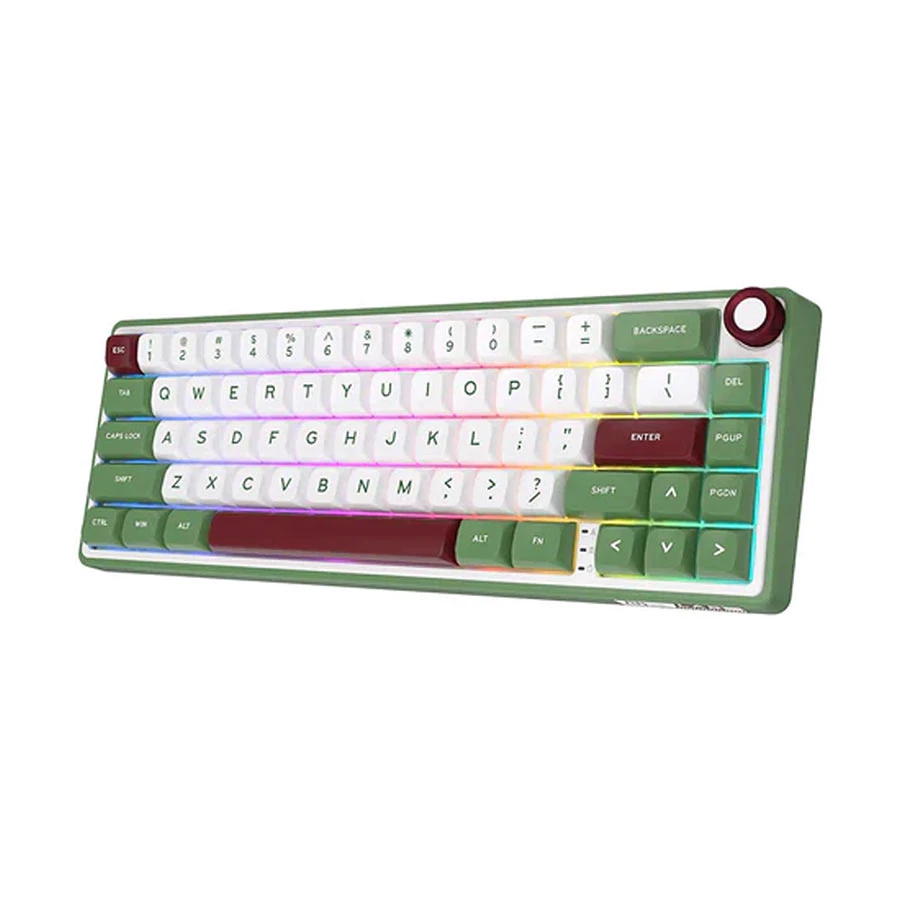 Royal Kludge RK R65 Wired boasts a cutting-edge fancy design, showcasing keycaps and switches made from quality materials. This unique piece of electronics on your desktop allows glorious light to shine through at maximum brightness, creating an aesthetically pleasing and trendy atmosphere with its backlit feature.